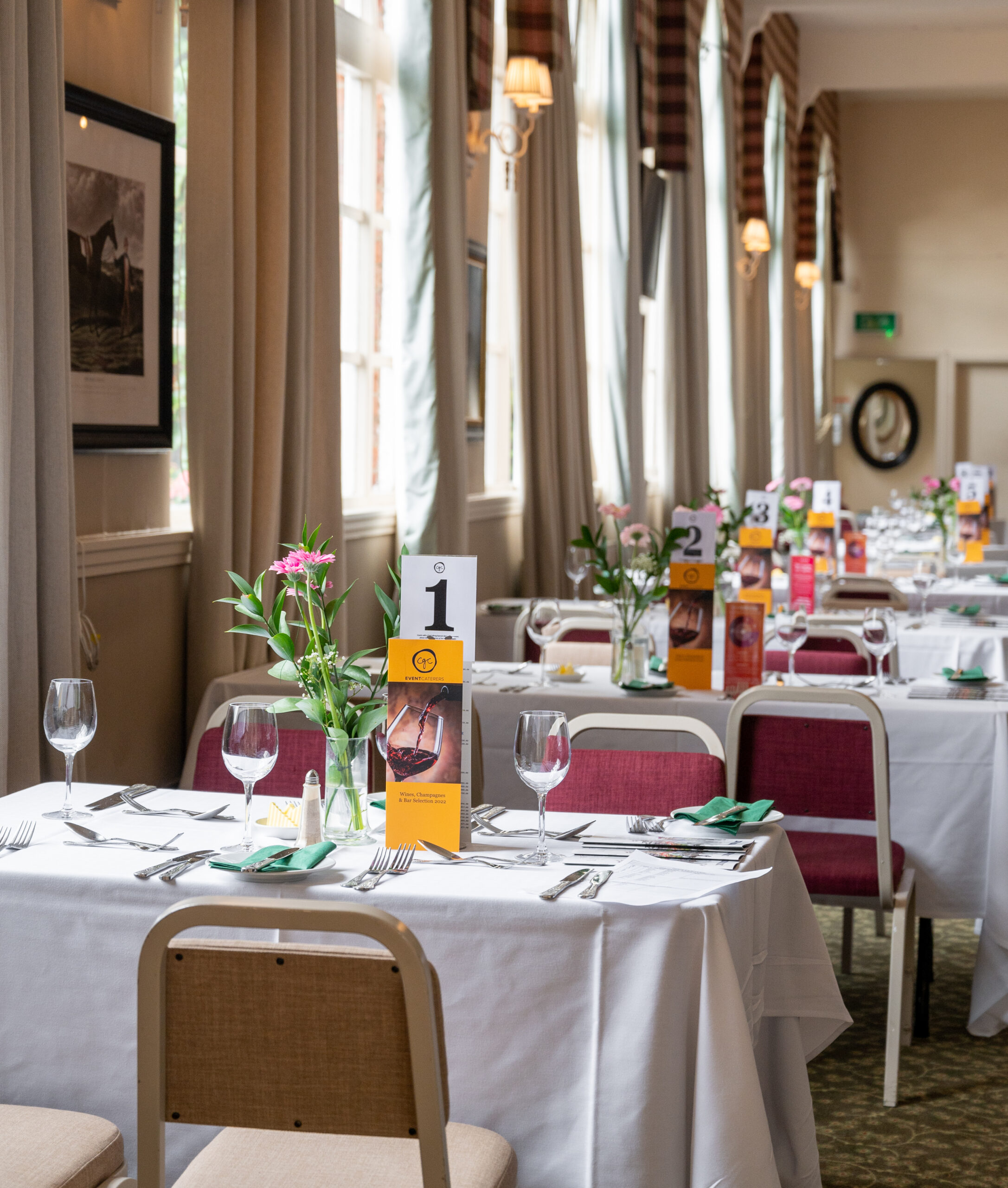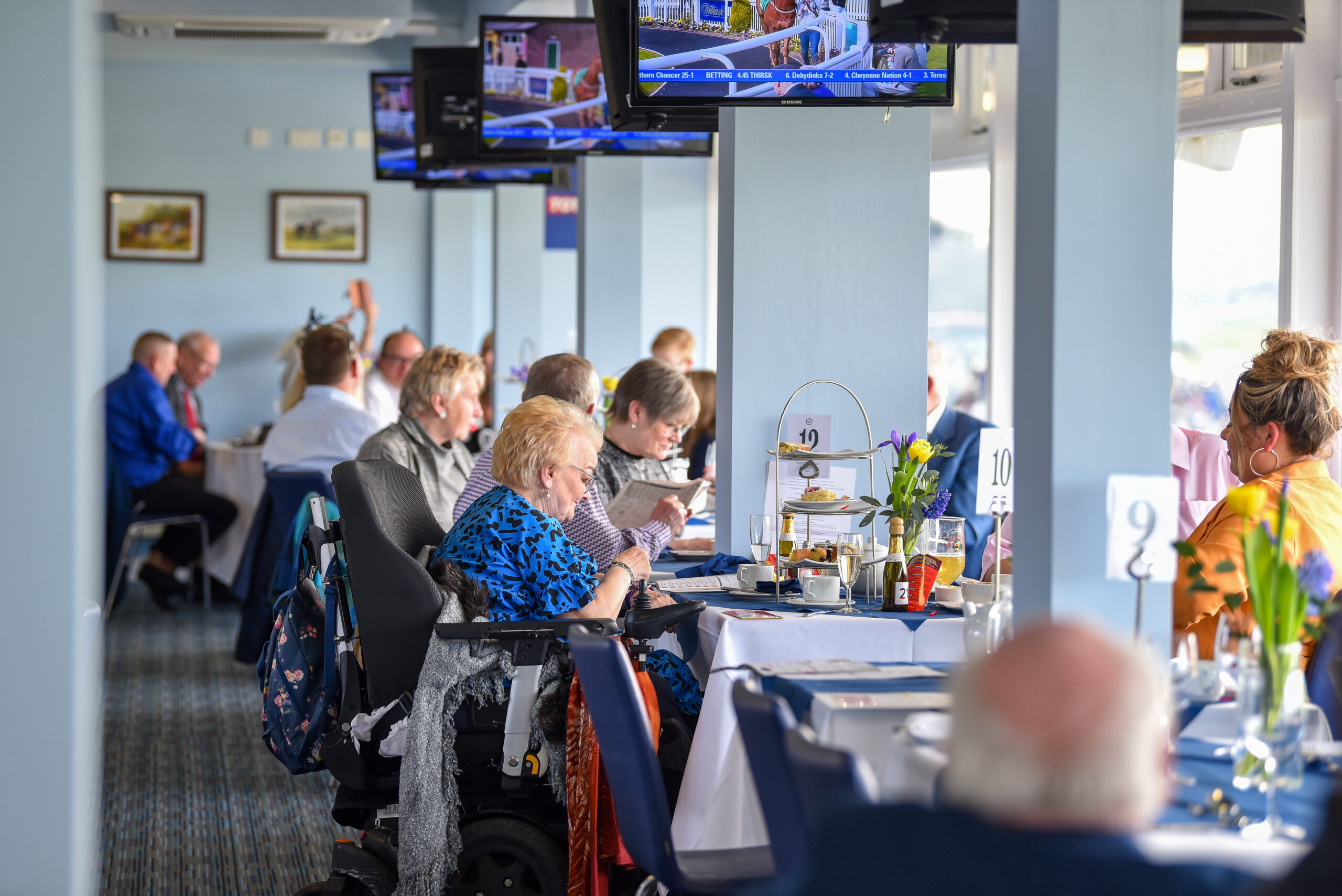 The Hambleton Restaurant is available in the Premier Enclosure, where guests can enjoy a reserved table for the day, a two or three-course meal, traditional afternoon tea, a private betting and bar facility, plus TV coverage of the racing.